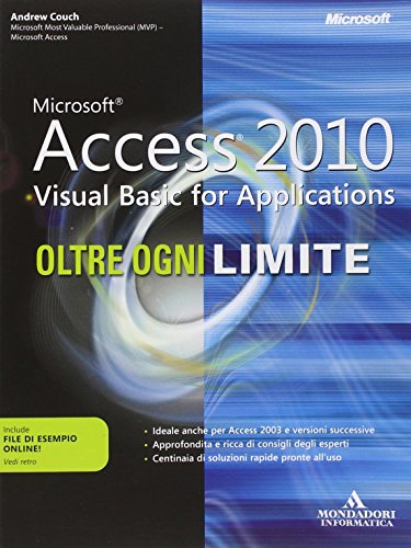 Microsoft Access 2010. Visual Basic for applictions. Oltre ogni limite libri scritto da autore famoso è che è stato pubblicato su . Libro che è piaciuto a questa persona ha pagine che naturalmente saremo in grado di godere.